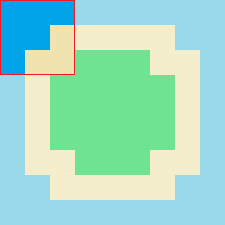 First, start with a small source image. Let's use this 9x9 pixel image of an island